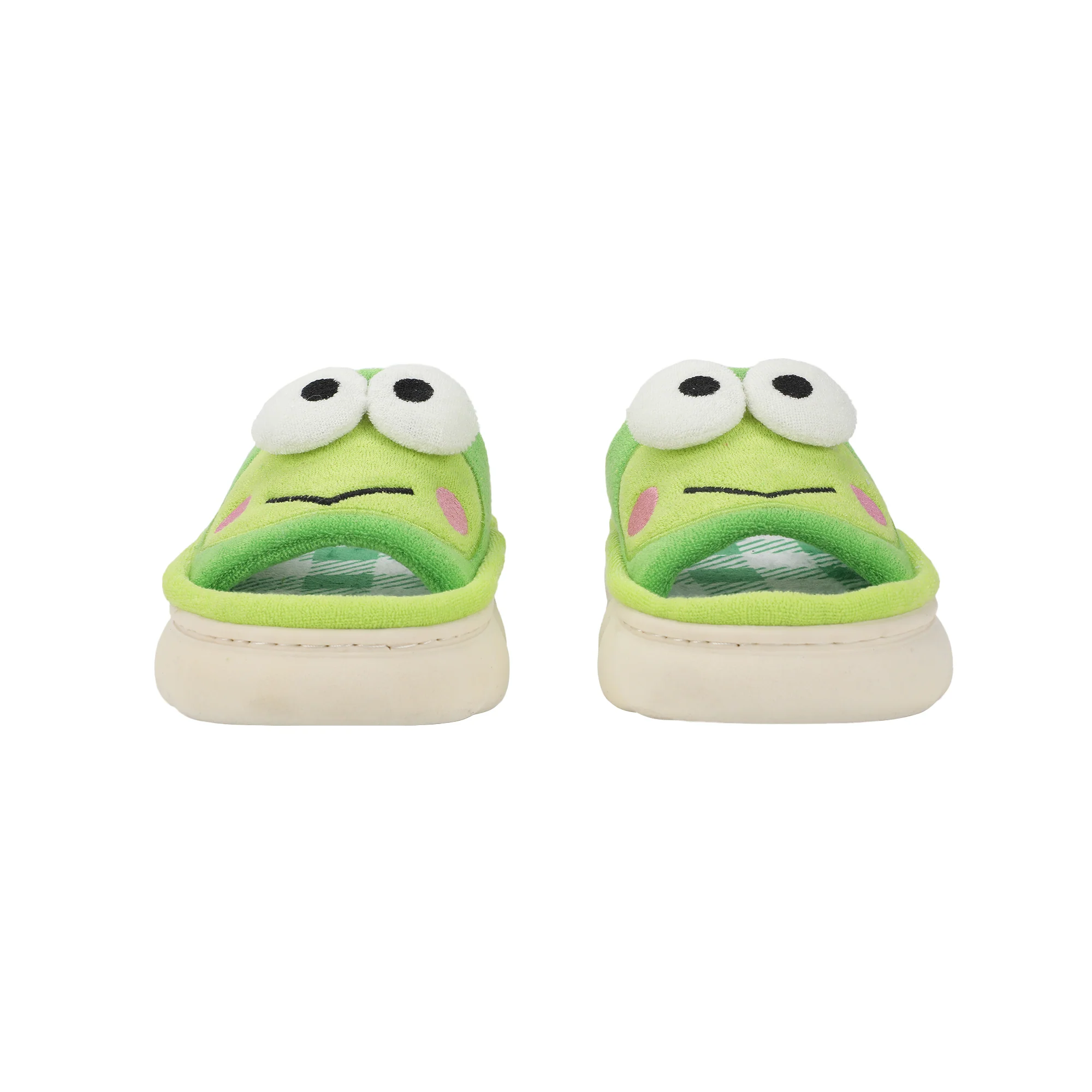 Keroppi 3D Character Face Art Women's Green & White Plaid Open-Toed Slide Slippers